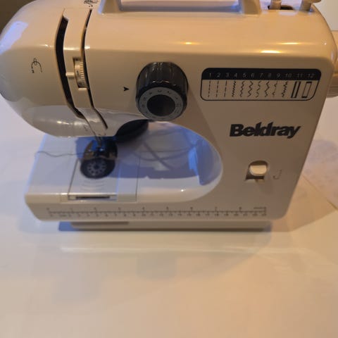 Singer Tradition mod 2263 symaskin i hvit utførelse. Maskinen har justerbare innstillinger for stinglengde og -bredde, samt flere ulike stingtyper som rettsøm og sikksakk. Den har bærehåndtak på toppen, spolepinne og standard nål- og trykkfotsystem. Arbeidsflaten er flat og egnet for grunnleggende sømoppgaver som reparasjoner, tilpasninger og enkel kles- og tekstilsøm. Passer til vanlig husholdningsbruk med standard symaskin-nåler og -tråd. følger med pedal og manual testes og virket alle funksjoner syr veldig rent og pent