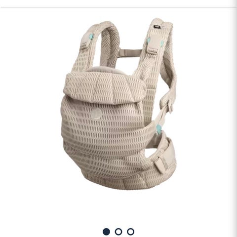 Najell Rise bæresele i fargen almond beige. Lite brukt, kan brukes forover og bakovervendt. Veldig enkel å feste barnet i på grunn av magnet klippsene. Enkel å justere.