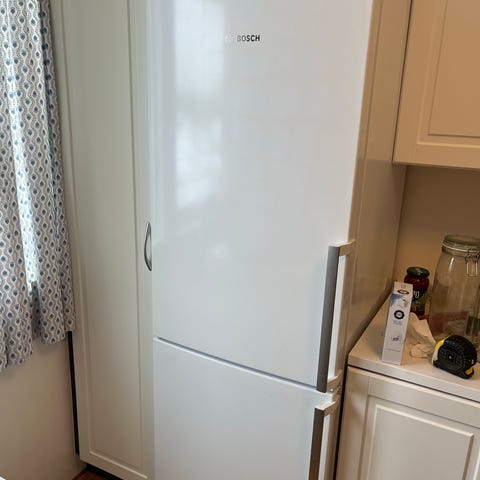Kombiskapet har kjøledel øverst og frysedel nederst, med separat dør for hver del.