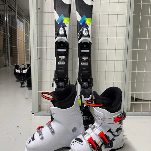 Rossignol Hero JR alpinstøvler i hvit farge med orange detaljer. Fire spenner for justering av passform.