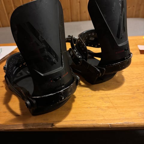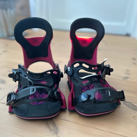 Bindingene er i størrelse XS, dvs. de passer med snowboardstøvler opp til størrelse 36 omtrent.