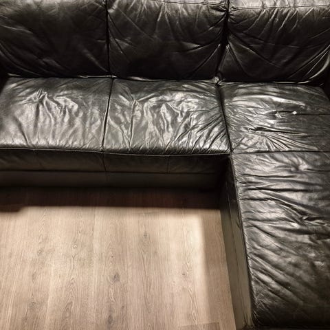Godt brukt. Fjærer på enden av sofaen defekt, men det funker fint å sitte på denne