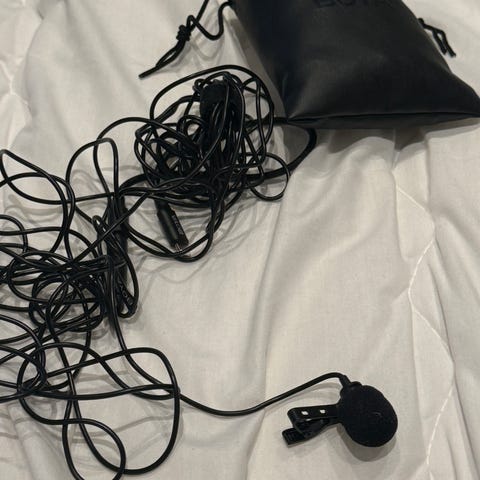 Trådløs lavaliermikrofon (med USB-C) som kun er testet en gang for å sjekke hvordan den fungerer. Den hadde god lyd!
