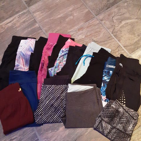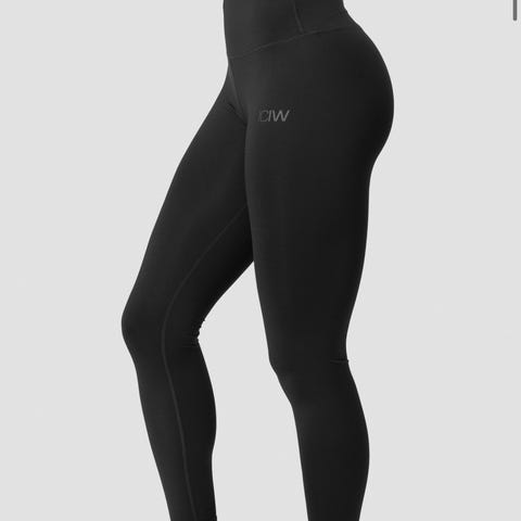 Trenings tights for dame i størrelse M. Tightsen er helsvart og egnet til fitness og annen trening. Modellen har høyt liv og tettsittende passform som følger kroppens bevegelser under aktivitet. Materialet ser ut til å være elastisk og mykt, tilpasset bruk på treningssenter eller til hjemmetrening.
