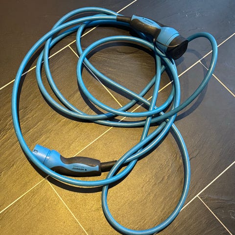 Vi har kun brukt kabelen til lading inni garasjen, så den er pent oppbevart/brukt innendørs.