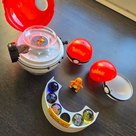 Pokémon klinkekule pokeball som fungerer slik den skal☺️ lyser, roterer klinkekuler og skyter klinkekuler. Har hatt siden barndommen ☺️ får med 4 klinkekuler