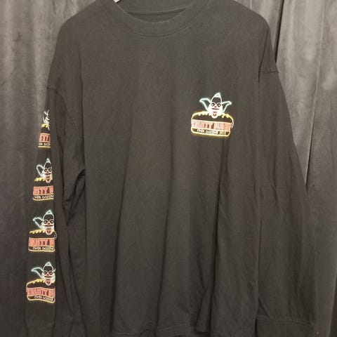 Godt brukt fiske long sleeve til salgs. Den er faded, cracked prints, flekker , størrelse L.