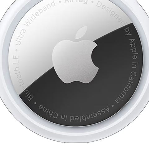 Apple AirTag sporingsbrikke. En liten Bluetooth-basert brikke som kan spores via kompatible Apple-enheter. AirTag fungerer sammen med Finn min-appen på iPhone, iPad og Mac