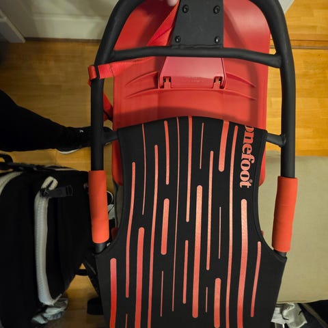 Stiga akebrett for barn. Akebrettene har ramme og detaljer i hovedsakelig plast og metall, med sete og ski tilpasset bruk i snø.