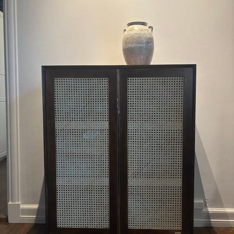 Bought new from Finn around a year ago. I think it’s Jotex Sion - can’t remember but looks a lot like it. One leg is lose and needs repairing and there are a few marks but easy to wash or even sand off. It still looks really good and it’s a very solid skap but we want to replace it with something taller.