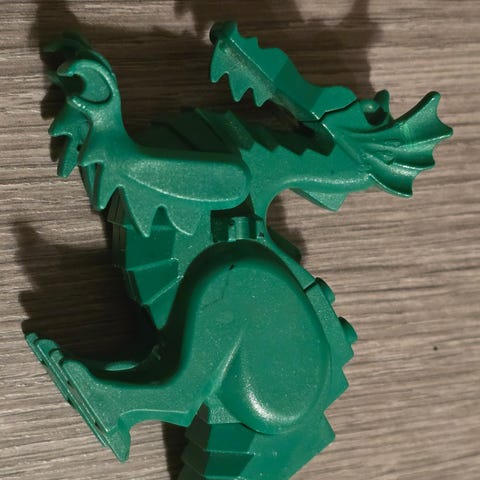 Denne spesifikke modellen ble produsert fra slutten av 1970-tallet og gjennom 1990-tallet. Den kjennetegnes av sin ensfargede kropp og den ikoniske "knoppen" på ryggen, som gjør det mulig å feste andre Duplo-klosser eller figurer på den.