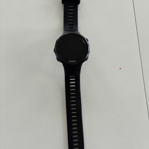 Garmin Forerunner 45S pulsklokke i svart med silikonreim. Selges da undertegnede har kjøpt en nyere klokke. Klokken fungerer fint, men er preget av å være en eldre modell sammenliknet med nyere Garmin-klokker.