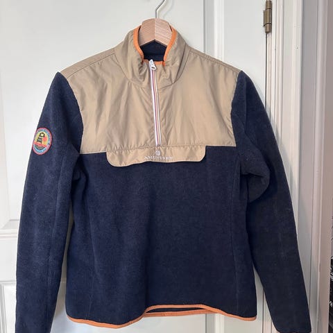 Amundsen fleecegenser for dame i størrelse XS. Jakken er i myk fleece med stofffelt øverst på bryst . Halv glidelås i front og klaff over brystet. Selges grunnet lite brukt.
