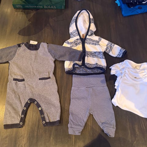 6 bukser, 3 bodyer og 1 pysj