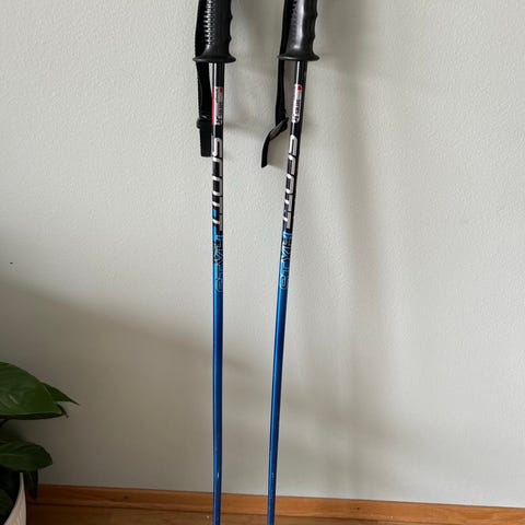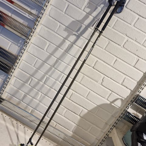 Kjøpt januar 2025, brukt på tre korte turer og to dager i slalombakke. Ikke vært med i fall. Noen synlige riper nederst på staven (bilde 3).