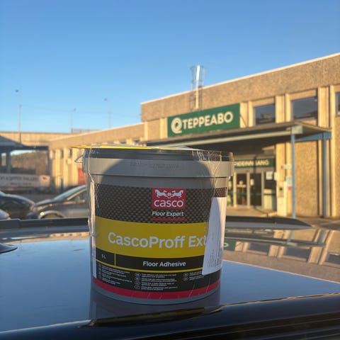 Casco CascoFlex gulv- og vegglim i bøtte. Limet er beregnet for bruk på gulv og vegg, og kan brukes til montering av ulike typer belegg etter produsentens anvisninger. Emballasjen viser holdbarhetsdato trykket på lokkekanten. Egner seg til innendørs bruk der det er behov for et fleksibelt lim til gulv- og veggflater.