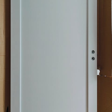 Innerdør i standard størrelse 82,5 x 204 cm. Pakken inneholder en hvit slett dør, en svart slett dør og en svart dør med stort glassfelt. Dørene har forborede hull for dørhåndtak og låskasse. Den svarte døren med glassfelt har enkelte merker og slitasje i overflaten, som vist på bildene. Egner seg som innerdører i bolig, for eksempel mellom rom eller som kontordører.