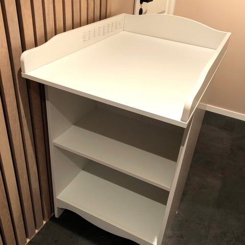 JLY Dream Stellebord i hvit fra Jollyroom. Stellebordet har høy kant rundt stelleflaten og to åpne hyller under til oppbevaring av bleier, klær og annet stelleutstyr, samt en skuff. Egner seg til bruk på barnerom eller bad der man ønsker en fast stelleplass. Laget i treverk med sprosser på baksiden for stabilitet. Passer til standard stellematte (stellematter følger eventuelt med etter egen avtale)