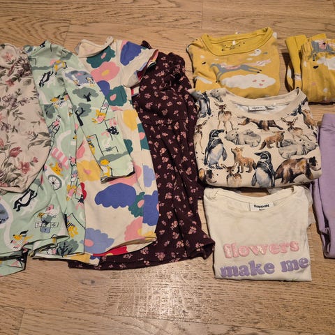 Pysjsett, genser og bukse, lyserosa striper. hm, bomull. Settet har aldri vært brukt