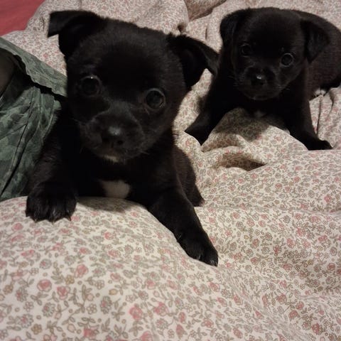Vi har to tisper av russisk tøy terrier blanding som begynner å lette etter nytt hjem. Valpene er født 27.01.26. Vokser i stue sammen med mor og far. Mor er 4.5 år gammelt veier 2.4 kg , far er 1.7 år gammelt og veier 2.2 kg , begge foreldre bor hos oss.