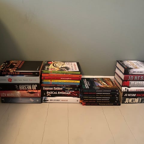 Alle bøkene er i pocketformat og tilhører krim- og spenningssjangeren.