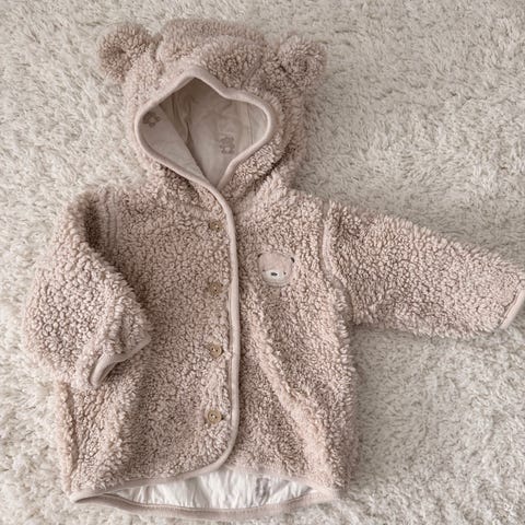 H&M collegejakke for barn i størrelse 62. Jakken er i bomull og har blå front og rygg med lyse ermer og stripete ribbekanter. Unisex-modell som passer både gutt og jente. Lukkes med trykknapper foran og har en påsydd bokstavdetalj på brystet.