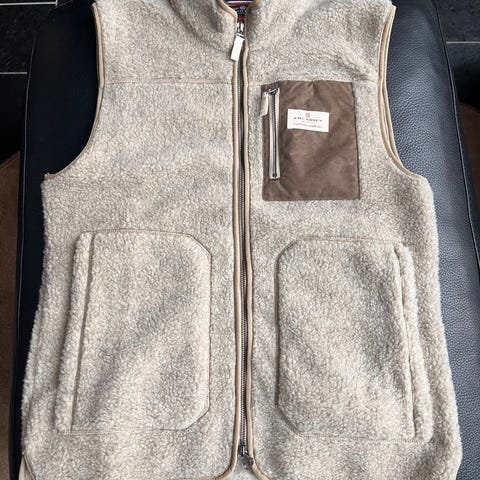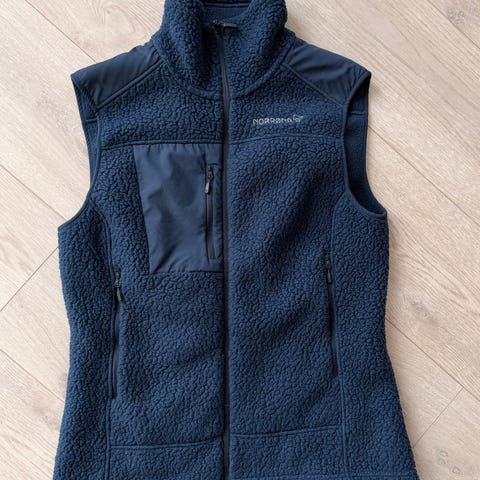 Fleecevest for dame i størrelse M. Vesten er i blå turkis fleece-materiale med glidelås foran. Den har høy krage og sidelommer med glidelås. Det er også en brystlomme med glidelås og forsterkede partier på skuldre og bryst. Passer til hverdagsbruk og ulike fritidsaktiviteter.