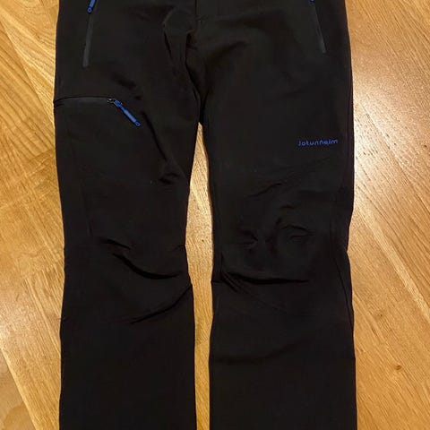 Jotunheim skallbukse for barn i størrelse 13/14 år Buksen er svart og laget i Gore-Tex-materiale. Modellen er unisex og egner seg for ulike uteaktiviteter der det er behov for et vann- og vindtett plagg. Buksen har flere lommer med glidelås og hel benlengde.