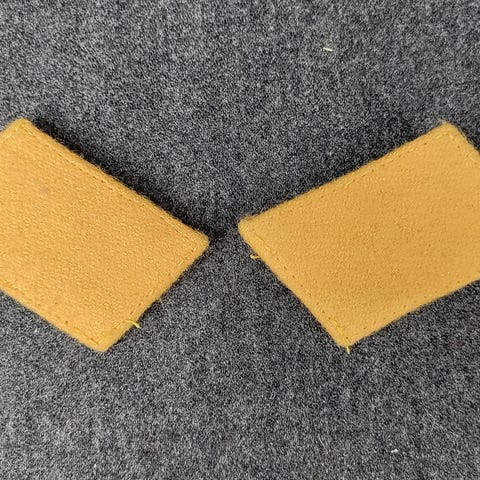 Reproduksjon av tyske WW2 kragespeil for Kystartilleri med mørkegrønn bakgrunn.