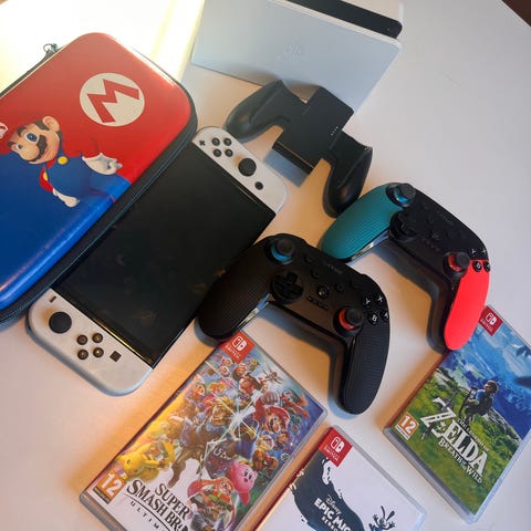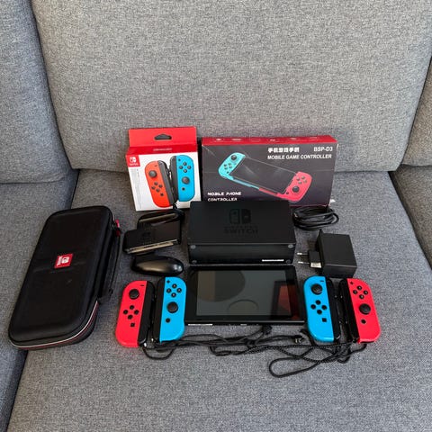 Nintendo Switch med dock, vesker og tilbehør – komplett