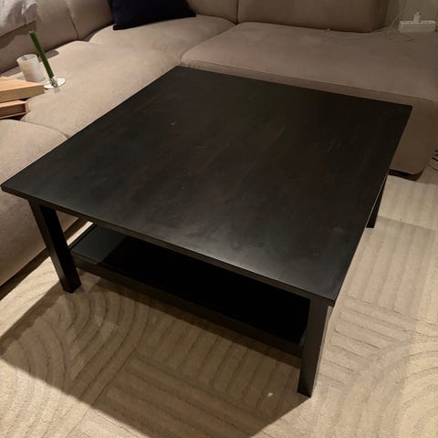 Sofabord i heltre eik. Malt i dempet sort. Bordet er helt fint og fint malt. Selges kr 500.