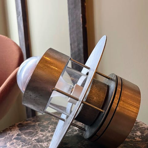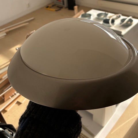 Jeg kan ha lampen med mest patina. Bare bytter skjerm med den som er på veggen.