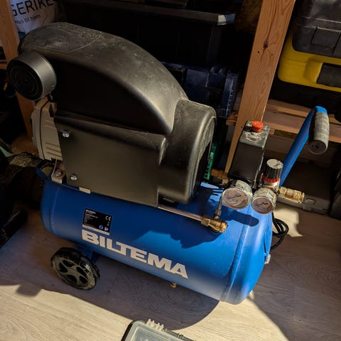 Kan følge med resten av en flaske kompressorolje. (Og en trykkluftslange om jeg finner den. )