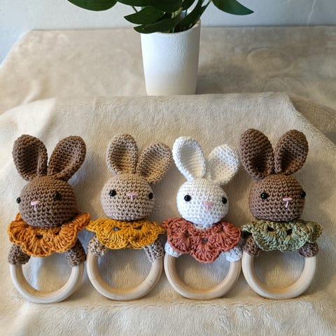 Heklede smokkesnorer og vognleker til baby flerfarget