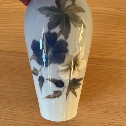 En vakker håndmalt porselen vase fra Royal Copenhagen,ca 6 cm høy og ca 4,5- 5 cm bred. I meget god stand..