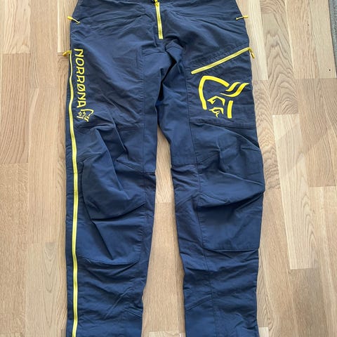 Str L. Selger en Norrøna Fjørå flex 1 bukse. Farge: Phantom. Lite hull,se bilde som kan sys.