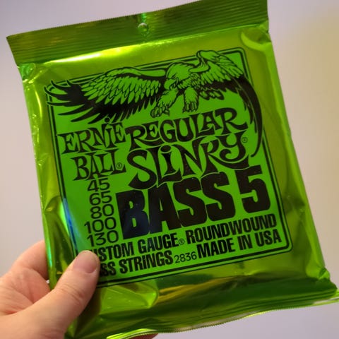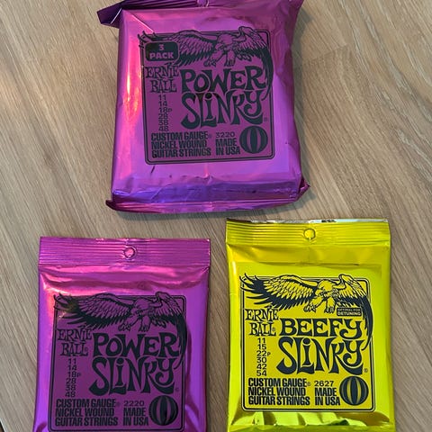 Selges: 2 sett Ernie Ball Slinky Bass 6-strengs bass-strenger for long scale elbass. Roundwound strenger 032 - 130