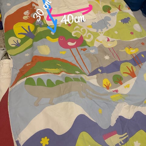 Vintage dynetrekk og putetrekk med motiv for barn. Størrelse 140cm x 200cm