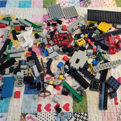 Lego Duplo klosser i blandet parti. Inneholder ulike typer byggeklosser og deler i flere farger og størrelser. Egnet som byggesett for små barn som vil bygge og leke med Duplo. Passer sammen med andre Lego Duplo-klosser og -sett. Både masse dyr biler og fly. Over 6kg.