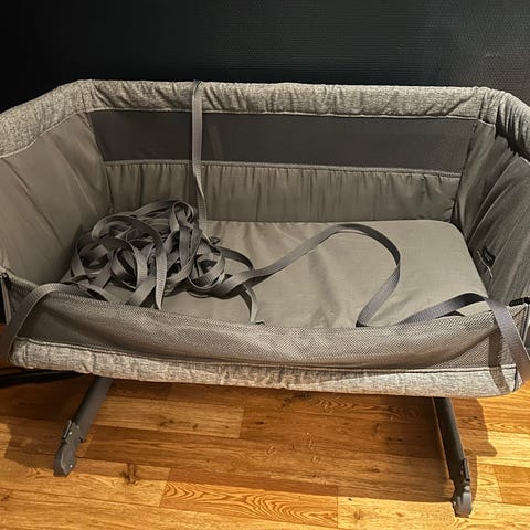 Selger en lite og pent brukt Babybay XXL. Følger med orginal sengebeskytter, madrass og et laken, uroholder og hvit sengekant. Madrassen har vaskbart trekk. Lett å montere og sette opp. Høyden kan justeres. Se linker for mer info.
