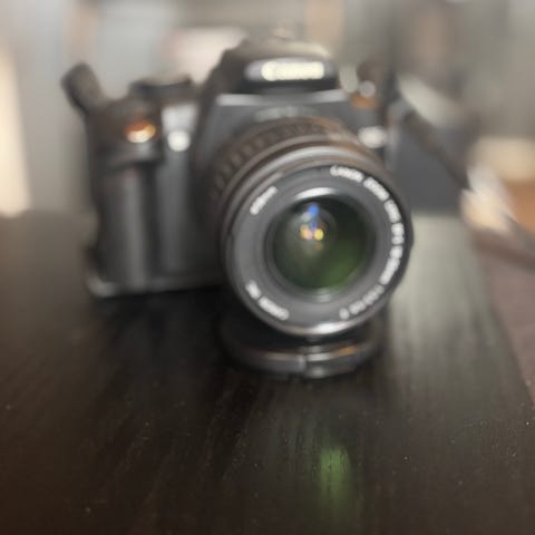 Dette er et analogt 35mm speilreflekskamera typ 1987 eller nyere. Det er i bra stand