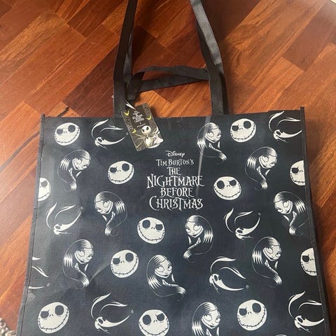 Disney The Nightmare Before Christmas stoffveske i sort med motiv fra filmen. Vesken har to bærehåndtak og er laget i stoffmateriale. Passer til daglig bruk og oppbevaring.