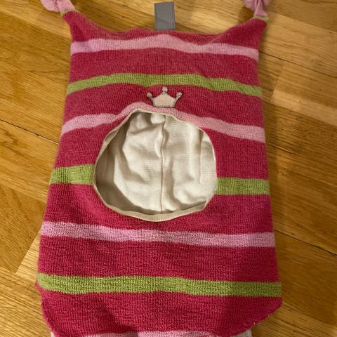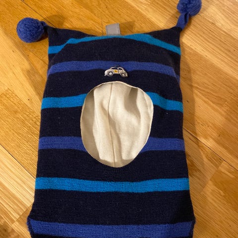 Kivat balaklava i ull for barn, unisex, i størrelse 92. Luen er brun med rosa prikker og har to dusker på toppen. Innsiden har mykt fôr for økt komfort. Balaklavaen dekker hode, hals og deler av overkroppen, og er egnet til bruk på kjølige dager. Laget i ull som gir god isolasjon og varme. Str.2