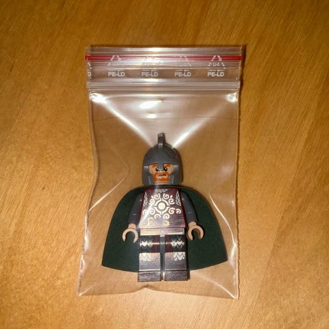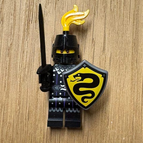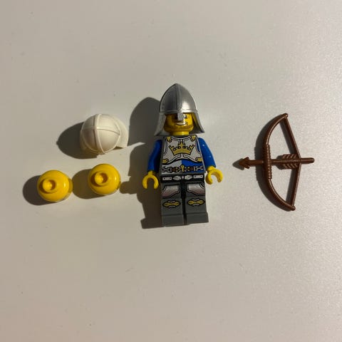 Dette er en LEGO Minifigur fra Castle Fantasy Era-temaet, spesifikt en Crown Knight med "Scale Mail" (skjellbrynje).