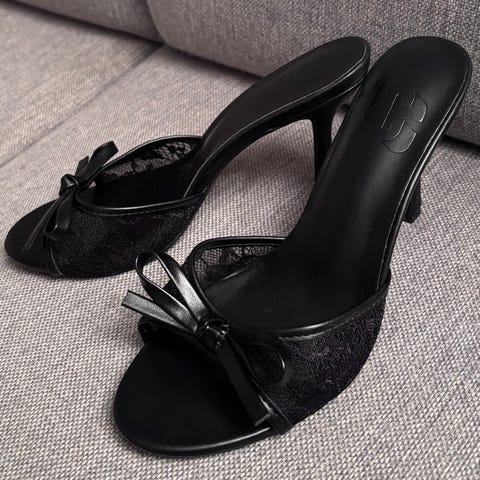 Selge disse då de ikke blir brukt lengre. Hælene er hvite å har nåken få bruksmerker som ikkje vises super godt men litt. Uten om det er den like fin. Størrelsen er 38 å er 9cm hæl på dei.
