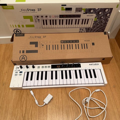 Selger en meget pen og fullt fungerende KeyStep 37 Black Edition. Dette er en kompakt, men seriøs MIDI-kontroller med innebygd sequencer og arpeggiator – perfekt både til DAW og dawless-rigg.