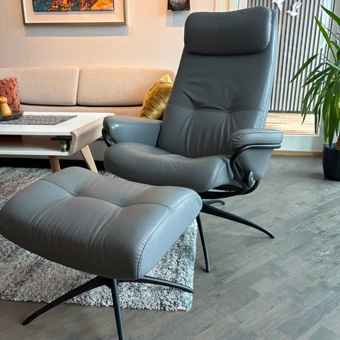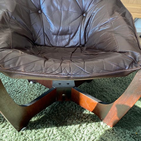 Hjellegjerde hvilestol/lenestol i skinn selges billig
