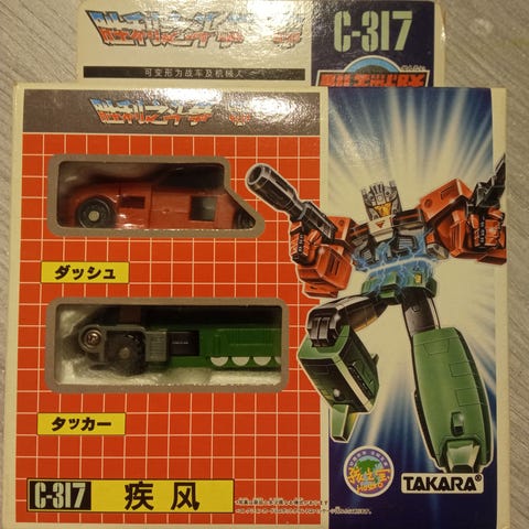 • Grå/oransje brikke med 6 hjul: Devastator-torso eller arm-del (Constructicon-del, sannsynlig Scavenger eller lignende, 1985).