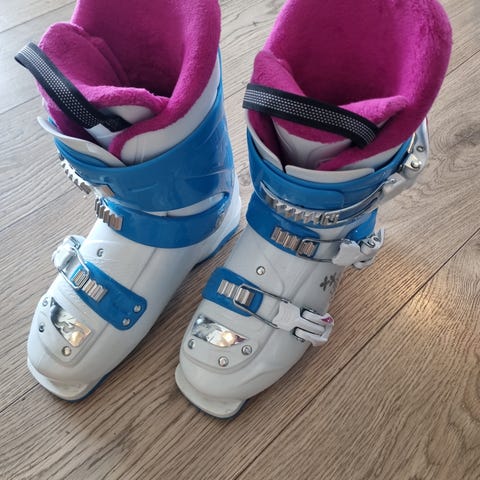 Nordica alpinstøvler i hvit og blå farge. Størrelse 220–235, tilsvarer str 36/37. Pent brukt.