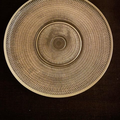 Enkelt men pent kakefat med liten kant.